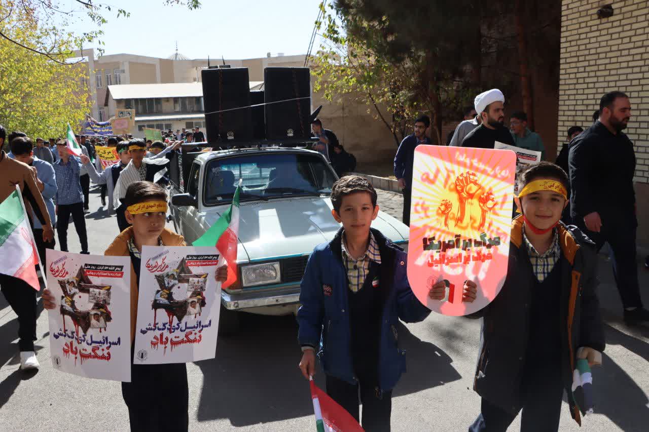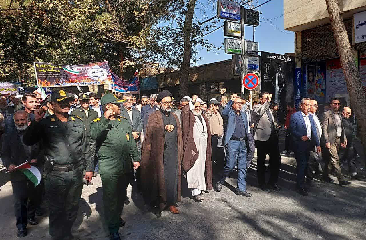 شرکت کنندگان با شعارهای "مرگ بر آمریکا و مرگ بر اسرائیل" از استکبار جهانی اعلام انزجار کردند.